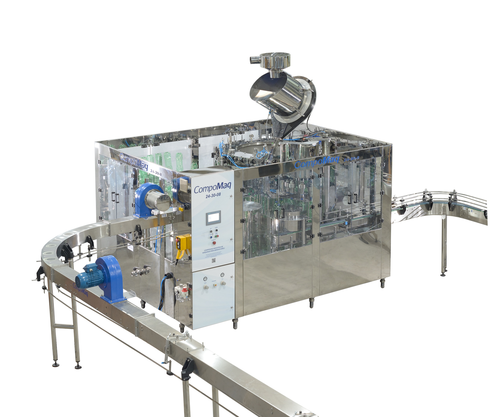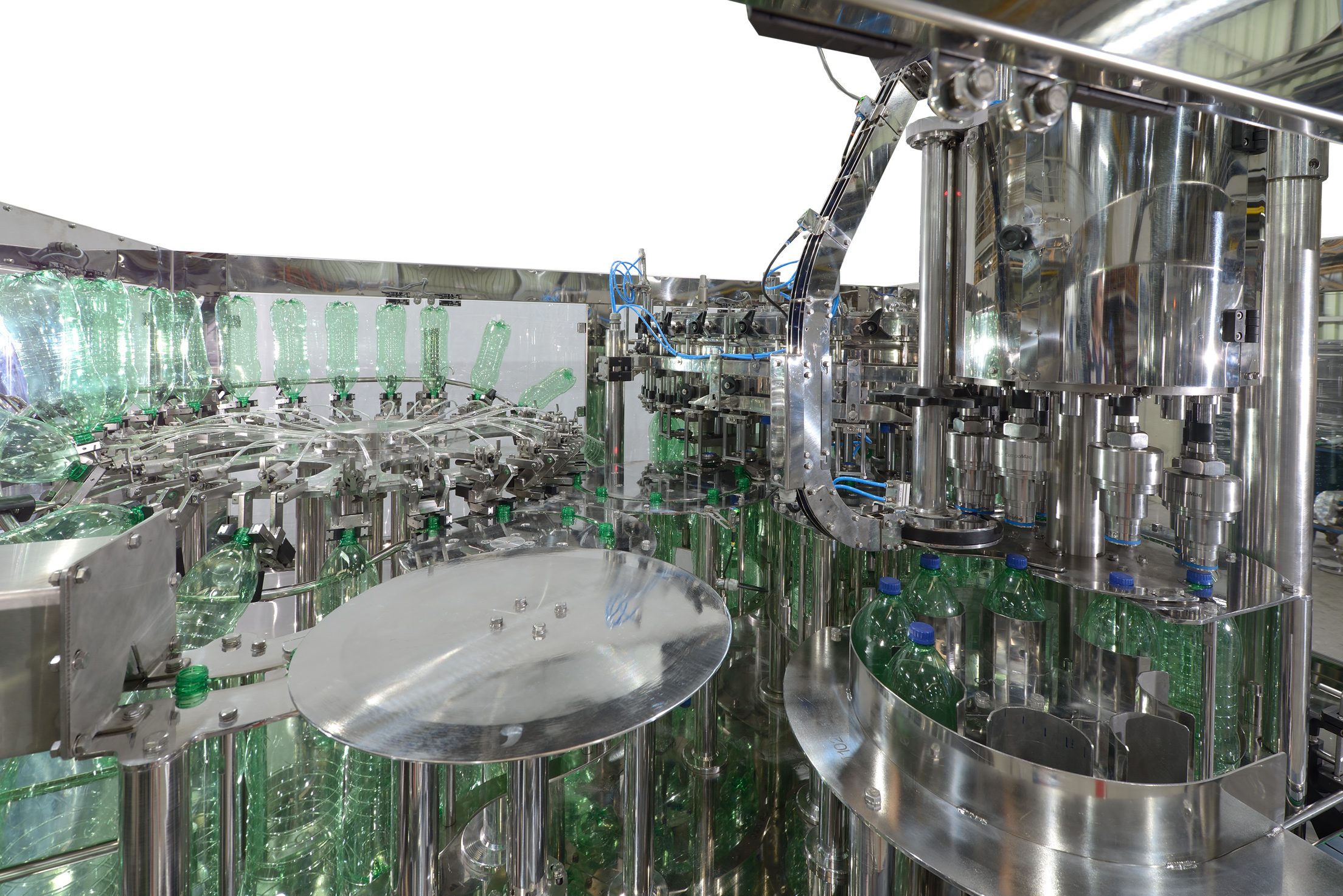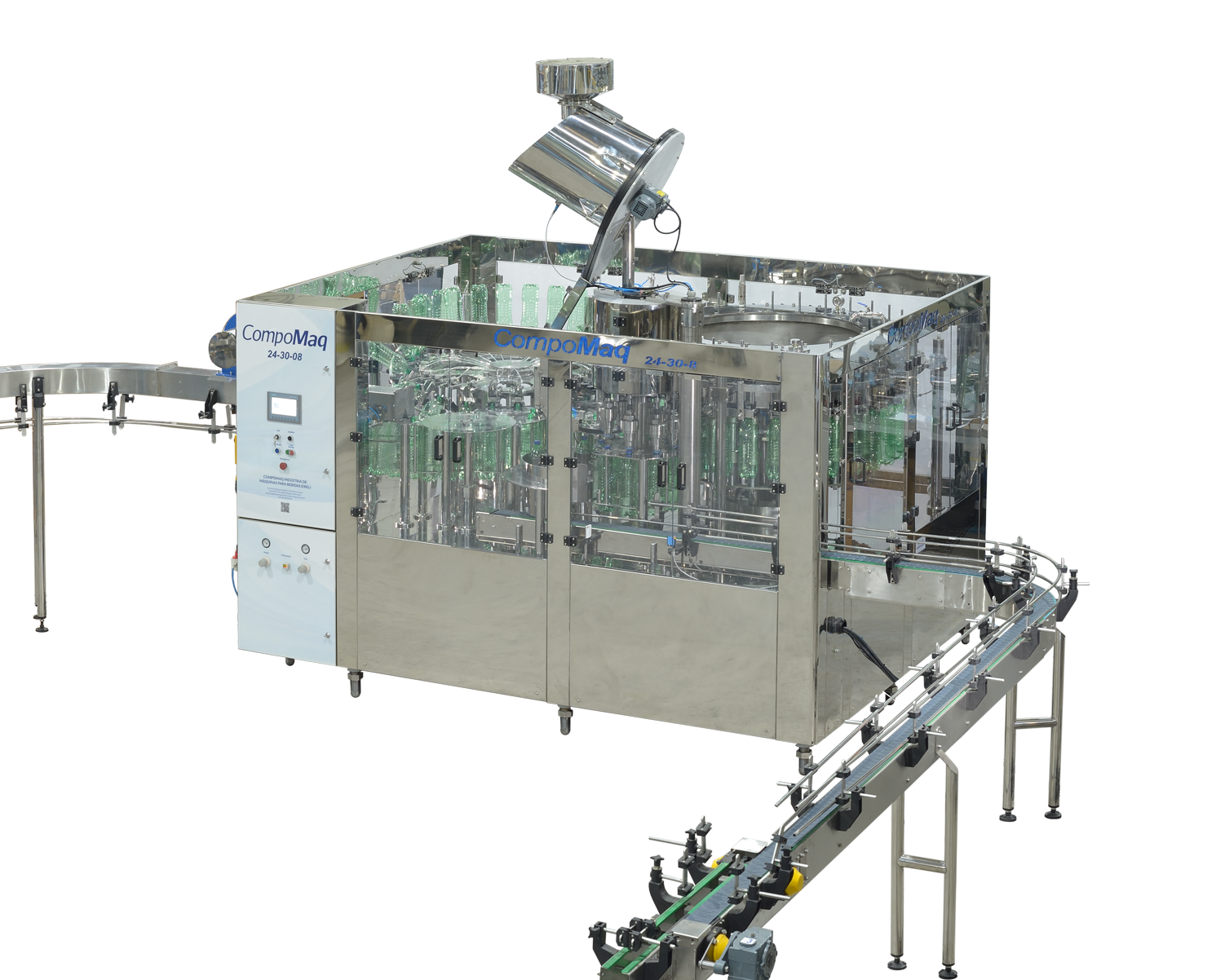 - Sistema de enxague, envase e fechamento dos frascos totalmente automático, para frascos PET.